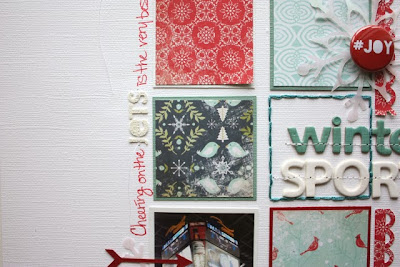The last share is the first page of my December Moments album. It's the same idea as a December Daily only modified as I knew I would not only NOT be able to capture a photo everyday, but I also would not be able to keep up with completing it on a daily basis....so December Moments it is. I used my sewing machine to sew extra pockets up top so that I would be able to have a sequin/star/flair/snowflake pocket.